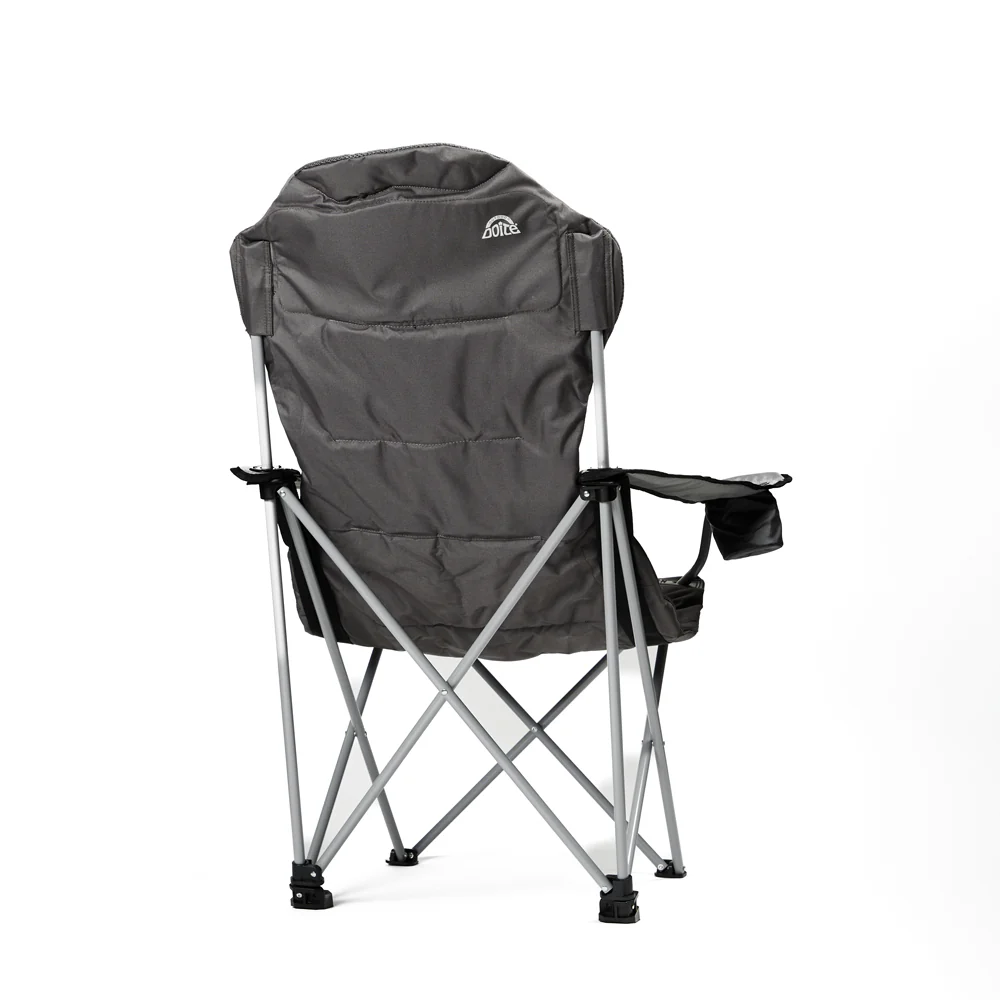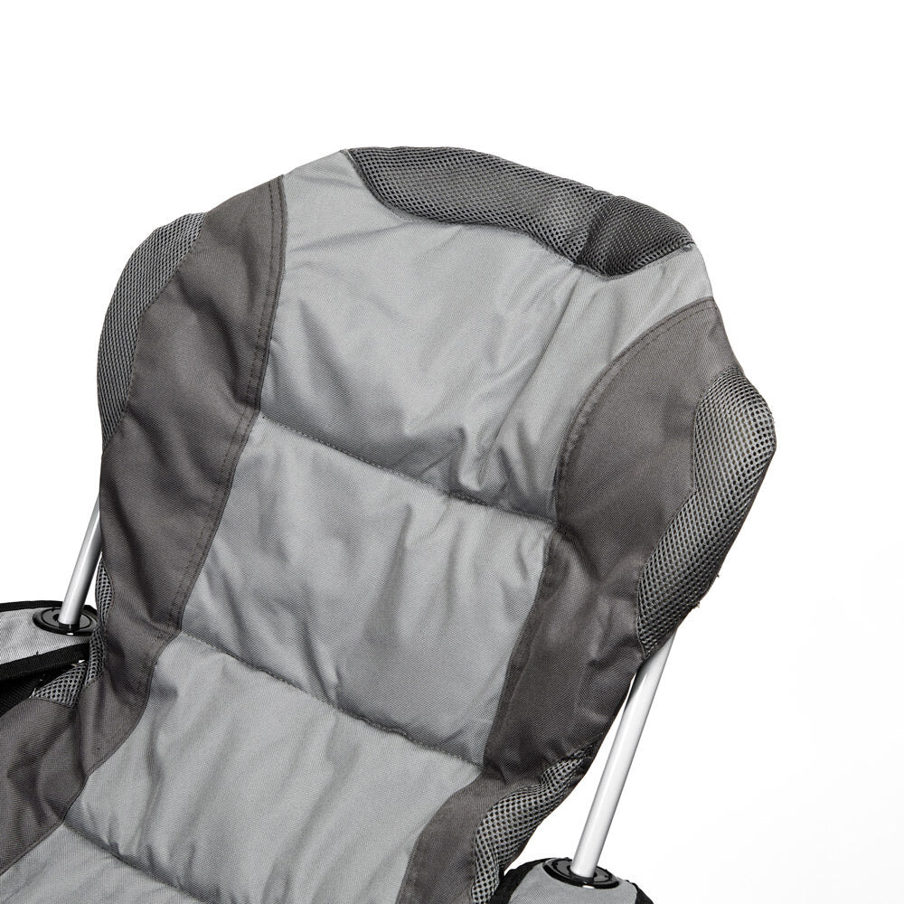 Denne polstrede campingstolen gir deg ekstra høy komfort på tur. Acorest har høy rygg med integrert hodestøtte og behagelige armlener som gjør den ideell for lange pauser og avslappende stunder utendørs.